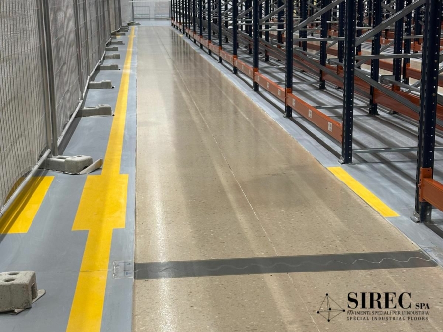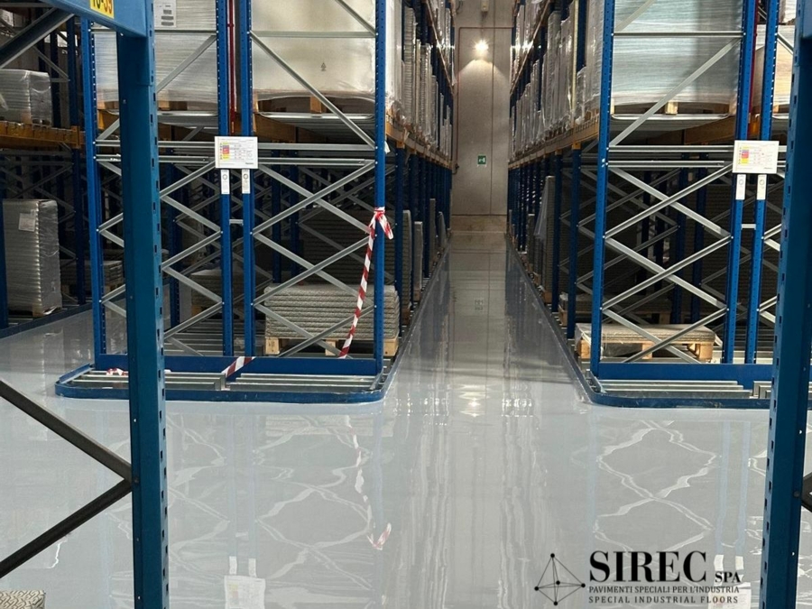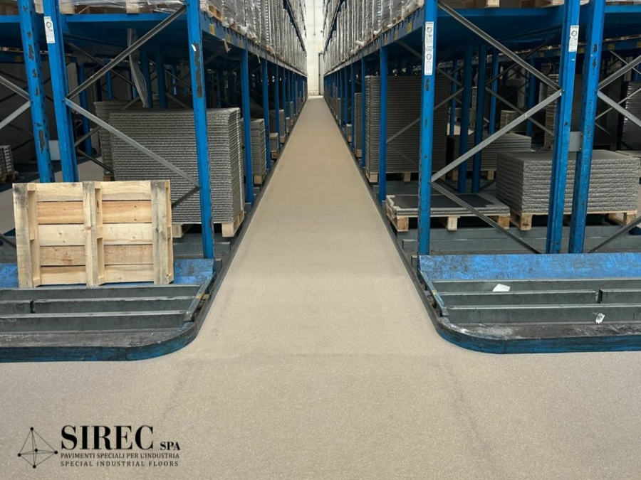 Con il pavimento in resina epossidica EPOXIBETON a planarità controllata, SIREC realizza pavimentazioni perfettamente planari, certificate DIN 15185, ideali per magazzini a corsie strette.